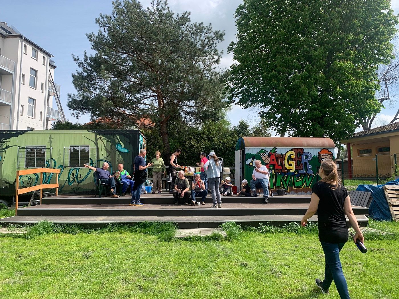 Aus den Angergärten mit verschiedenen Eigentumsverhältnissen ist nun ein großer Gemeinschaftsgarten zum Mitmachen und Erholen für interessierte Mölkauer entstanden, der auch die Möglichkeit für kulturelle Aktivitäten bietet