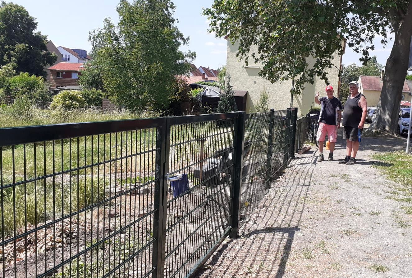 Am Rietzschke-Ufer ist nun auch ein Weinspalier durch unseren umsichtigen Angergartenvorstand Frank entstanden. Ein weiterer, großer Bauabschnitt war die Erneuerung der kaputten Zaunfelder an der Engelsdorfer Strasse. Hierbei haben Angergärtner tatkräftig Hand angelegt. Jetzt gibt es ein gut zu öffnendes Einfahrtstor.