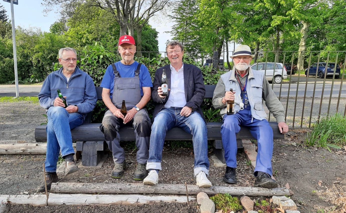 Im Frühjahr folgte eine Sitzgruppe, die uns nach getaner Arbeit, Entspannung ermöglicht. Wir Gärtnerinnen stehen in regem Austausch und so werden Sämereien getauscht, Konfitüre gekocht und kluge Ratschläge verteilt. Großes Highlight sind die verschiedenen Tomatensorten, die der Gärtner Herr Naumann vorzieht und die auf unserem Tomatenfeld besonders gut wachsen.