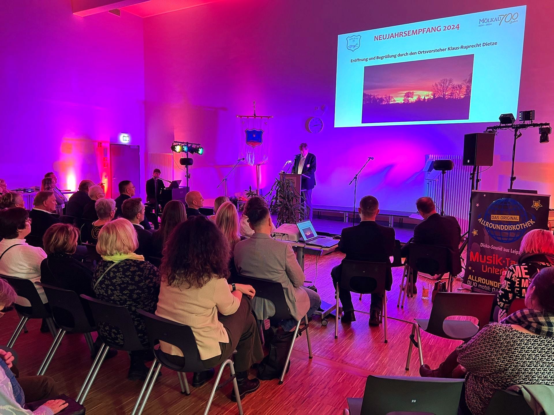 Im Rahmen der Feierlichkeiten 700 Jahre Mölkau fand am Freitag, 26.01.2024 ein erstmaliger Neujahrsempfang des Ortschaftsrates Mölkau statt. Er sollte zum einen als Auftaktveranstaltung für das Jubiläumsjahr gelten und gleichzeitig selbst als Novum das Ansinnen des Ortschaftsrates, Engagement zu würdigen und damit Gemeinsinn zu stiften, unterstreichen.