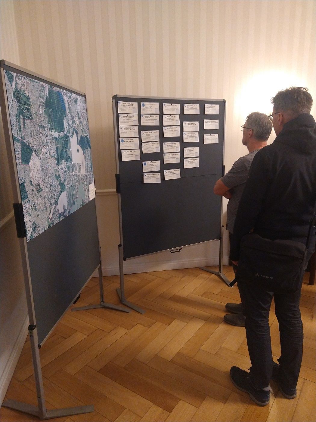 Zu jedem Themenkomplex fanden sich Pinnwände mit zahlreichen Vorschlägen und angedachten bzw. laufenden Maßnahmen, die in großen Ortsplänen übersichtlich gekennzeichnet waren. Dabei flossen auch die Ergebnisse aus der Befragung „Leben in der Ortschaft“ (2023) mit ein, an der damals zufällig ausgewählte Bürger teilnehmen konnten.