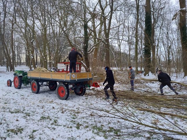 Axel und Klaus-Ruprecht (die Unermüdlichen) kämpfen sich weiter durchs Unterholz. Der wichtige Entwässerungsgraben entlang der Strasse am Park wurde vollständig freigeschnitten. Unterstützt wurden sie von Matthias Recker und Jörg Mehlis, es wurde fleißig gehäxelt und die Bäume auf der Koppel wurden von ihren massiven Gattern befreit, freigeschnitten und gepflegt.