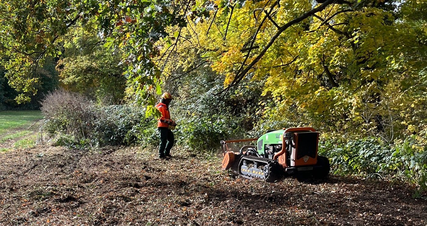 Dank der Initiative pro Mölkau wurde mit großem finanziellen Einsatz ein Forstmulcher bestellt, um erste Flächen entlang der Wiesen und des Hohen Graben freizuschneiden. Mehrere Freiwillige legten Hand an und halfen kräftig mit.